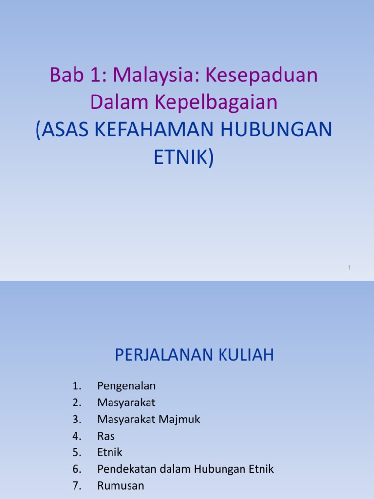 Ada 20 gudang lagu lecture malaysia dalam kepelbagaian bab 1 terbaru, klik salah satu untuk download lagu mudah dan cepat. Kesepaduan dalam kepelbagaian hasil pembelajaran selepas mempelajari bab ini, para pelajar dapat: Kesepaduan dalam kepelbagaian di malaysia. Keunikan tadbir urus negara mengurus perpaduan dalam kepelbagaian amat penting. Malaysia dalam kepelbagaian day 1: