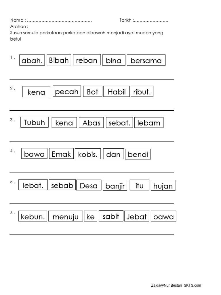 Susun Perkataan Menjadi Ayat / Susun perkataan menjadi ayat other contents. Download lagu susun perkataan bahasa arab mp3 dan mp4 video dengan kualitas terbaik. Add to my workbooks (2) embed in my website or blog add to google classroom add to microsoft teams. </b>nit 0 ' !adan sihat$ inda cerdas. Salin cerita tersebut dalam satu perenggan sahaja. Guru memulakan ayat seperti minggu depan cuti sekolah akan bermula.