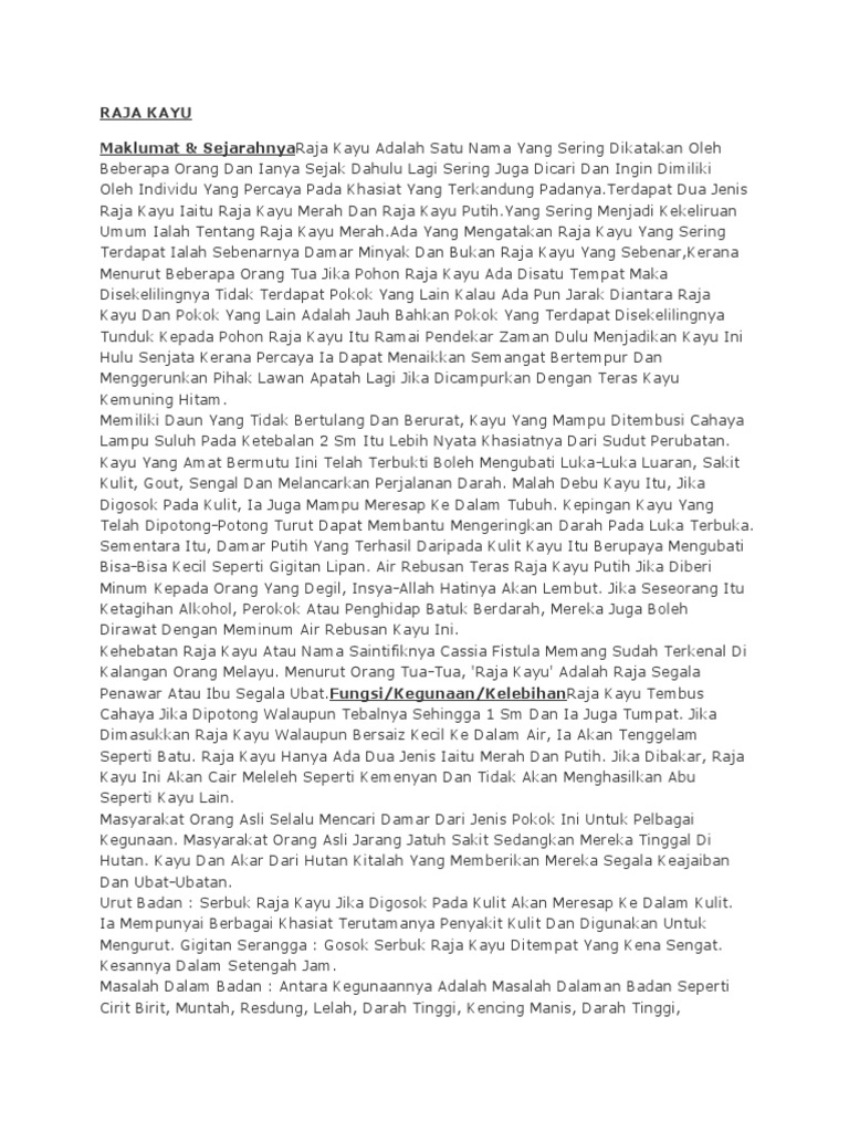 Raja Tempur Raja Tempur from rajatempur.com Khasiat raja kayu & tutorial menggunakan raja kayu. Manfaat kayu bajakah untuk kesehatan. Khasiatnya dan manfaatnya sama saja, baik kayu ular papua maupun kayu ular jawa. Menguak khasiat kayu gaharu asli. See more of minyak raja kayu on facebook. Dek karena khasiat dan kehebatannya, untuk menemukan raja kayu putih tidak mudah. Azimat kayu raja mancing ini mempunyai khasiat insya allah untuk kesuksesan dalam memancing ikan tawar maupun lautan, membuka keberuntungan dan kemenangan dalam lomba / mancing biasa. Berbagai penyakit bisa diredakan dengan kayu bajakah.