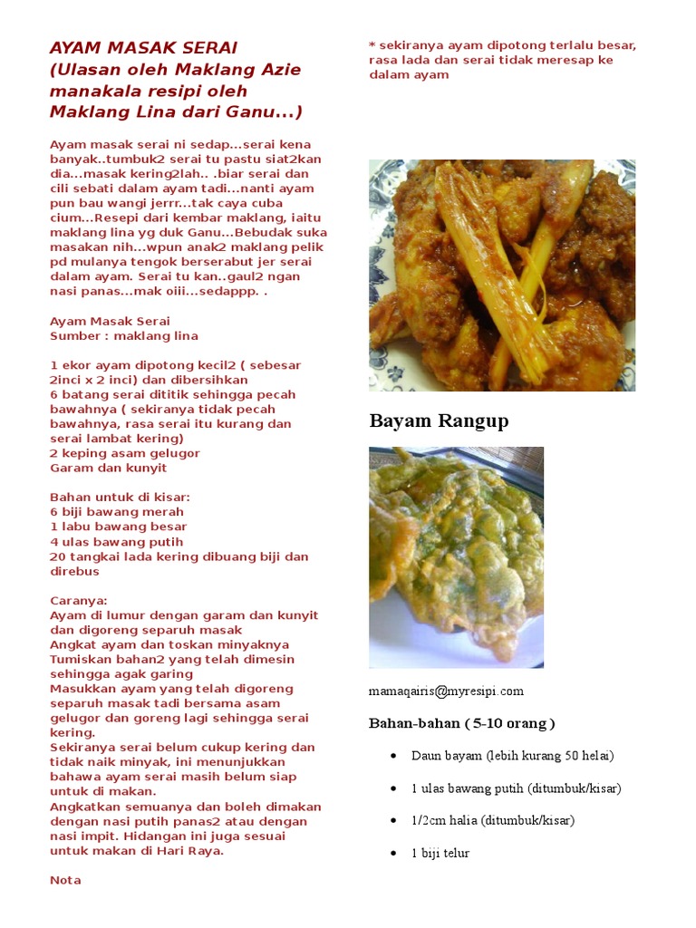 Related : Resepi Ayam Masak Serai - My Life My Loves Resepi Ayam Masak Merah Serai / 1/2 ekor ayam ( di asap) bumbu:.